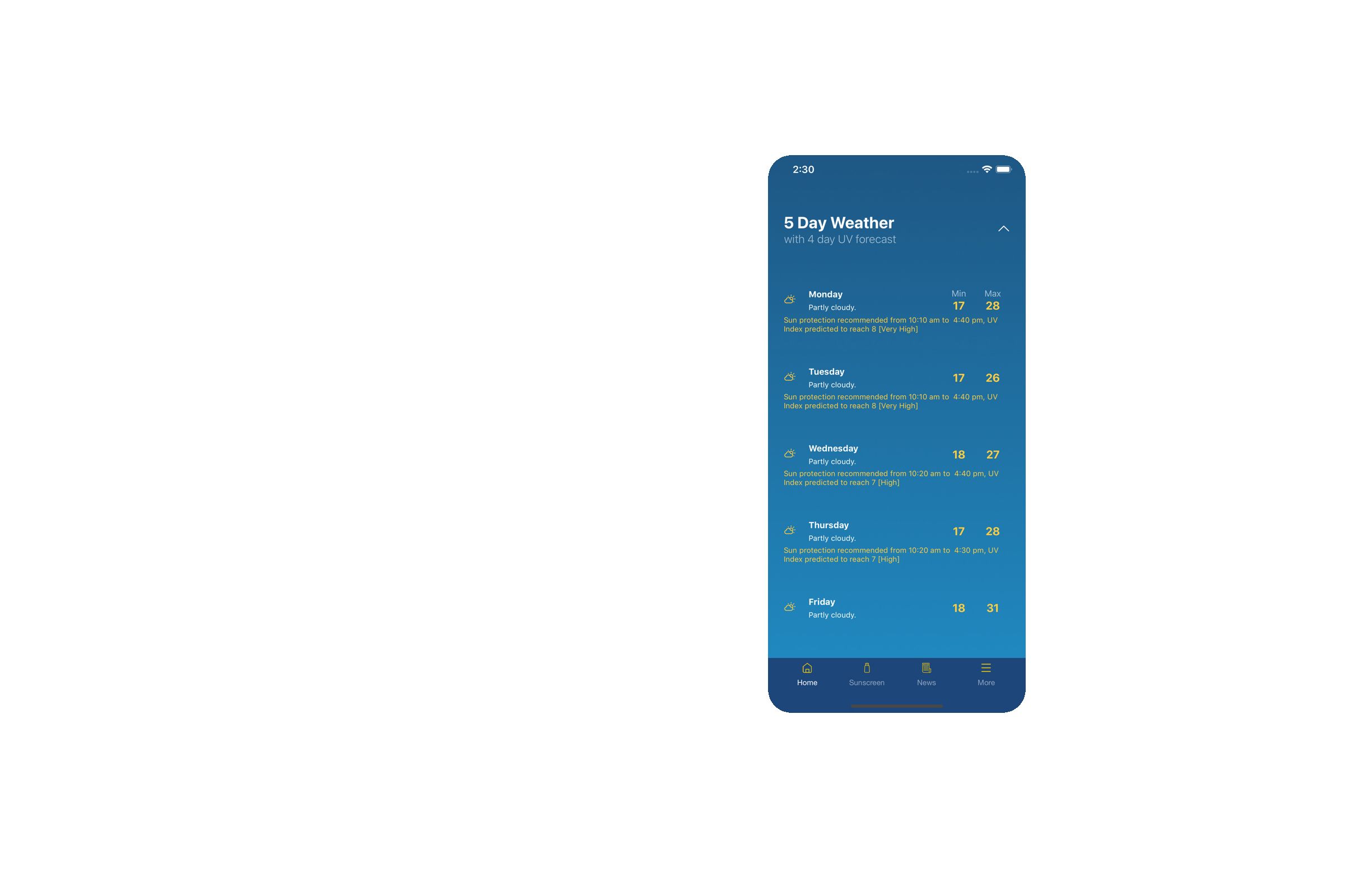 The data are used to generate a UV index for the application and highlight times when the index reaches three or higher. By using the location of the mobile device, it can inform users when to use Sun protection and provide information about UV levels, as well as associated information such as temperatures.