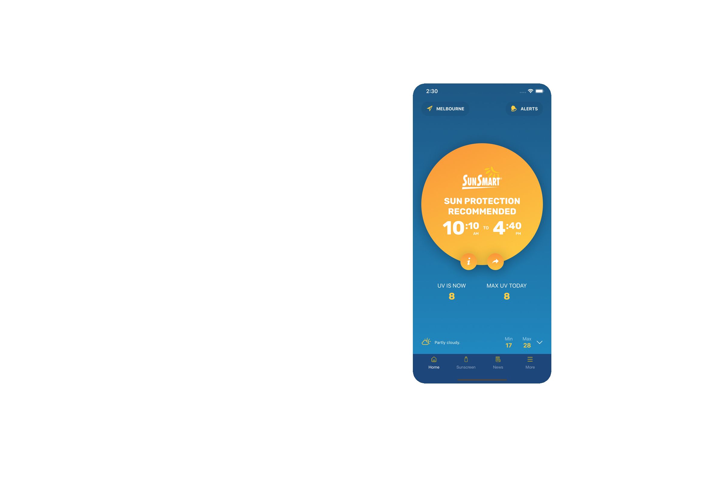 The SunSmart application is free to download and available for anyone with a smartphone or tablet. It provides personalised recommendations about Sun protection, based on location, the time of day and UV levels. It offers live UV levels for major cities, and forecasts for all other locations around Australia.