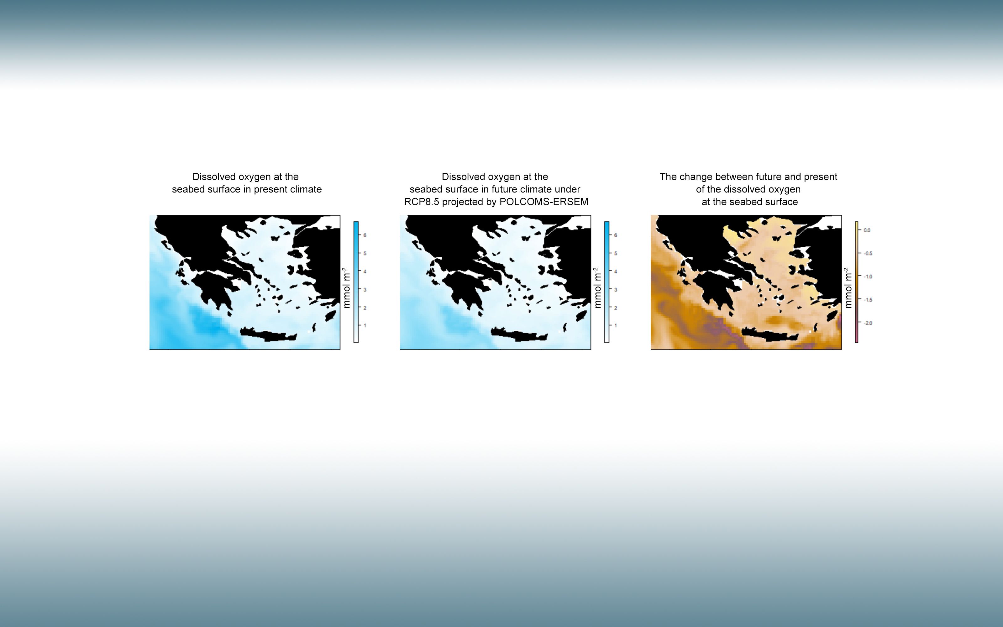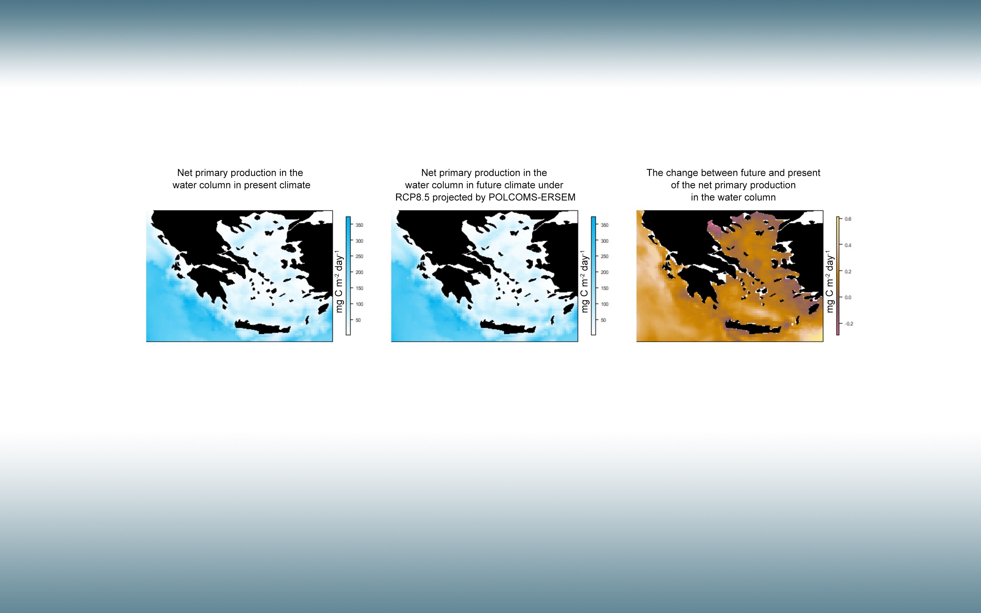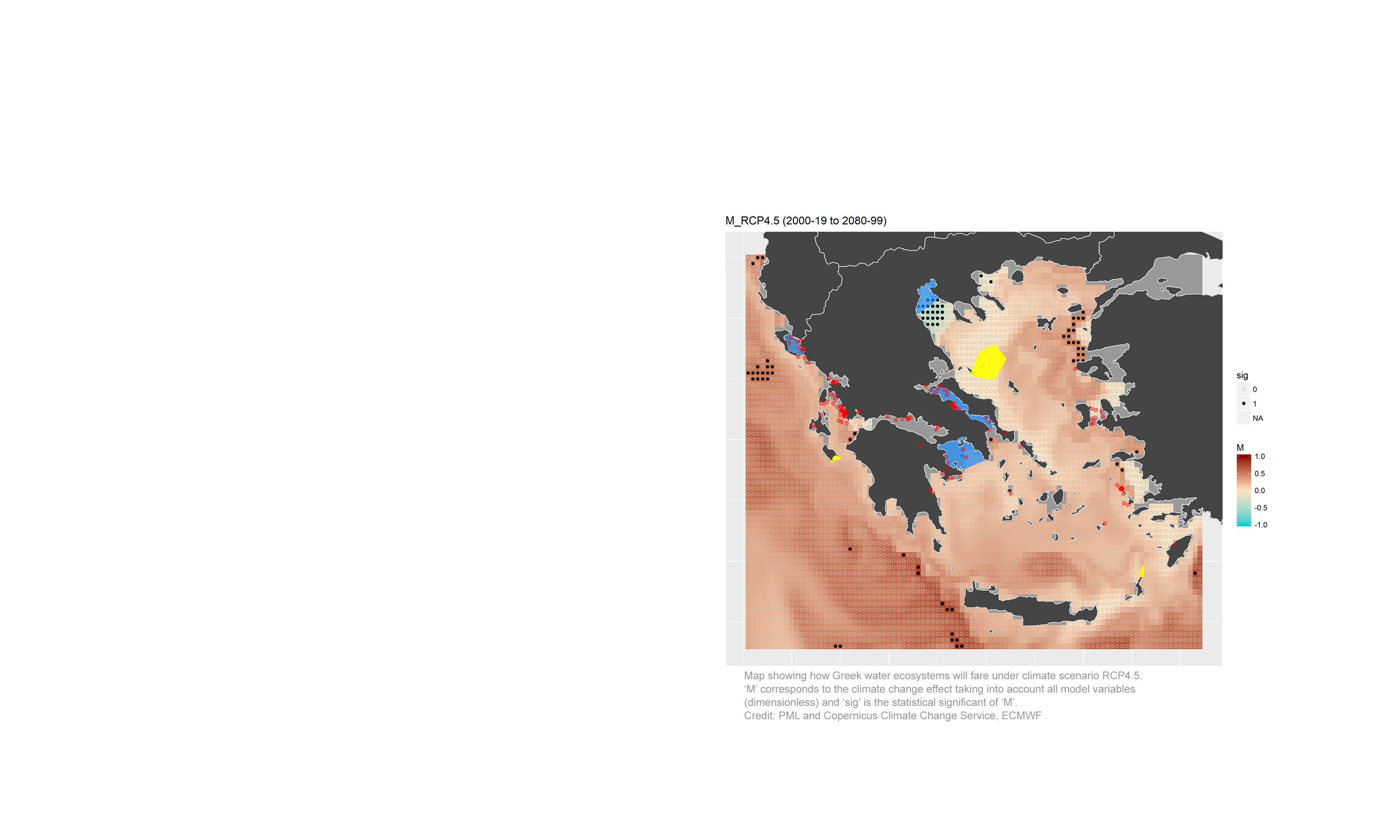 Under RCP 8.5, climate hotspots will appear through much of the Greek EEZ by the end of the 21st century, presenting a drastic environmental change.